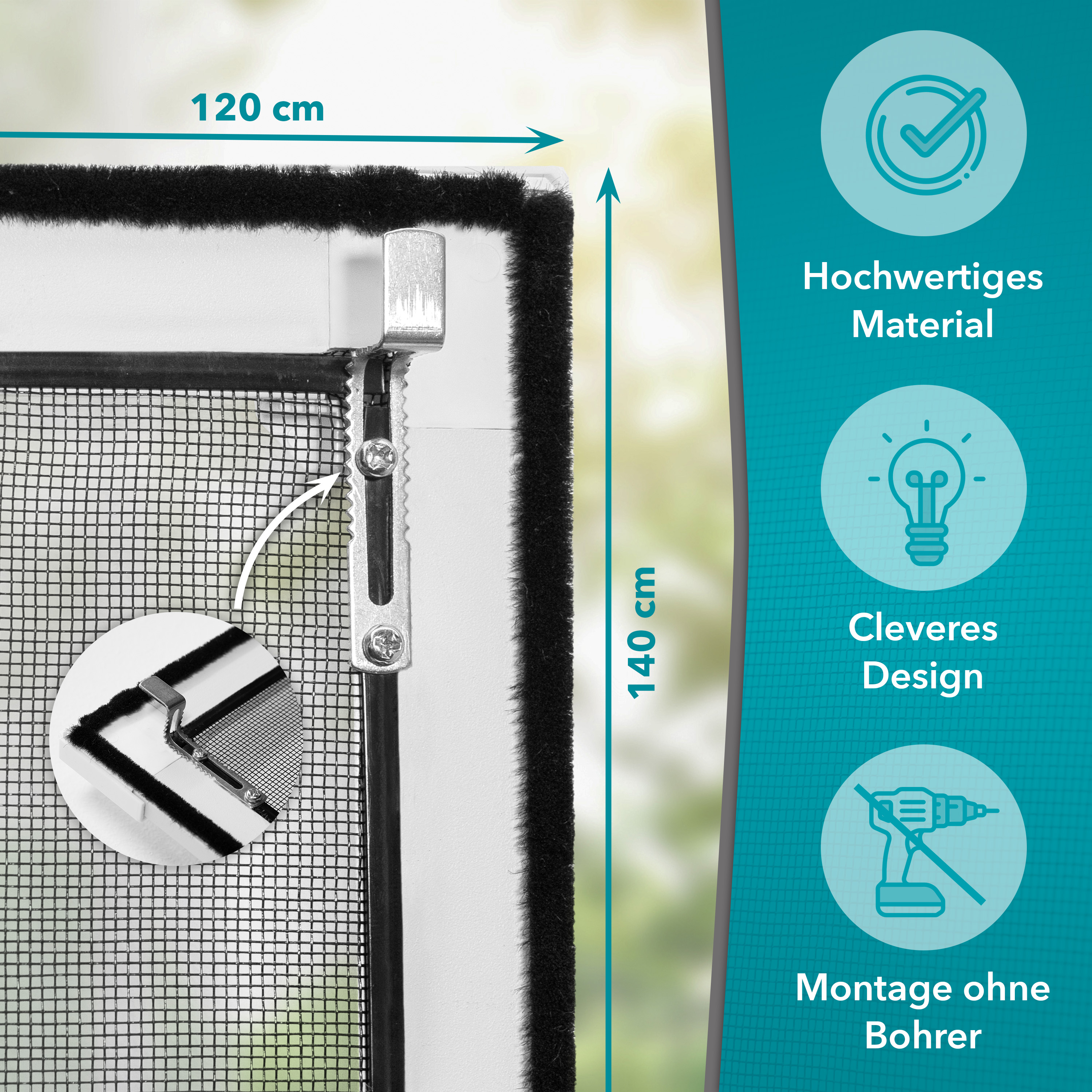 ist licht- und luftdurchlässig, gleichzeitig robust und UV-beständig. Die umlaufende Bürstendichtung sorgt zusätzlich für perfekten Sitz und verhindert das Eindringen kleinster Insekten.Einfache Montage – ohne Bohren und ohne Stress
