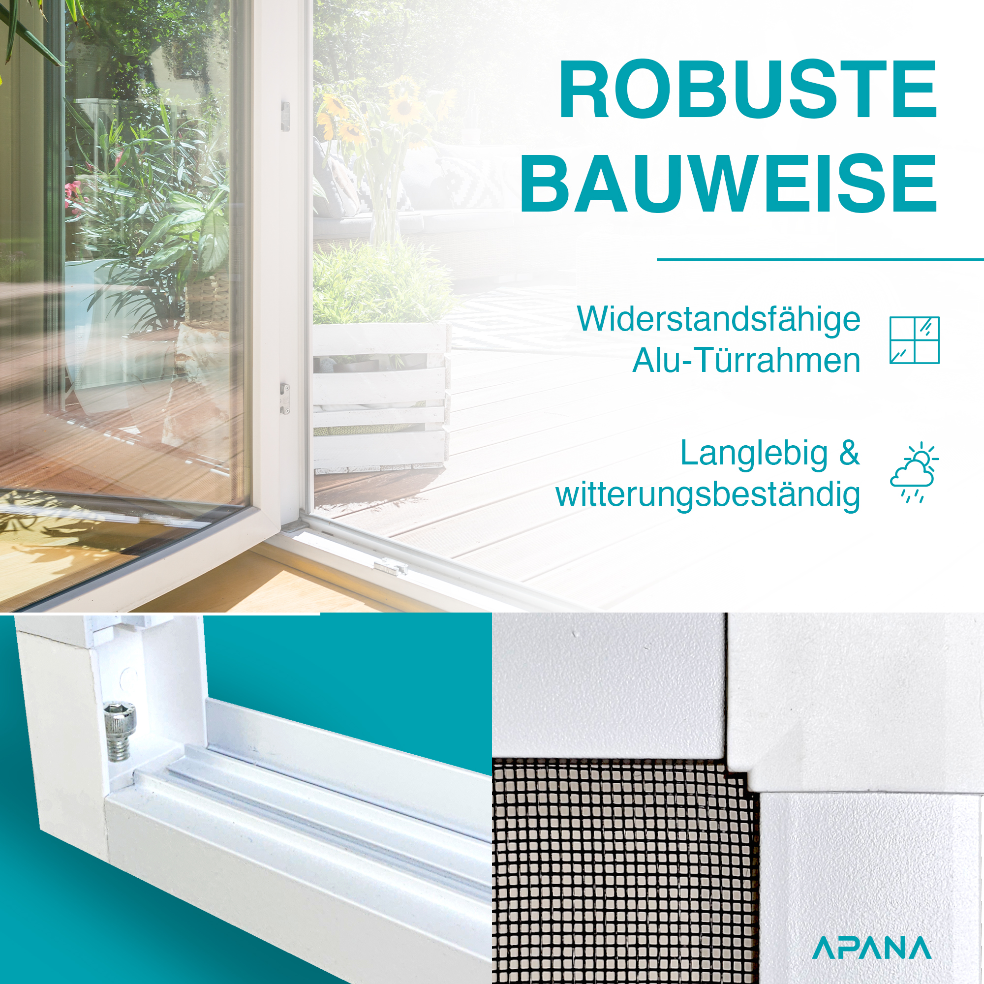Öffnungen. Perfekt für Terrassen, Balkone oder Seiteneingänge, bei denen ein klassisches Fliegengitter nicht ausreicht.Hochwertige Materialien für Langlebigkeit