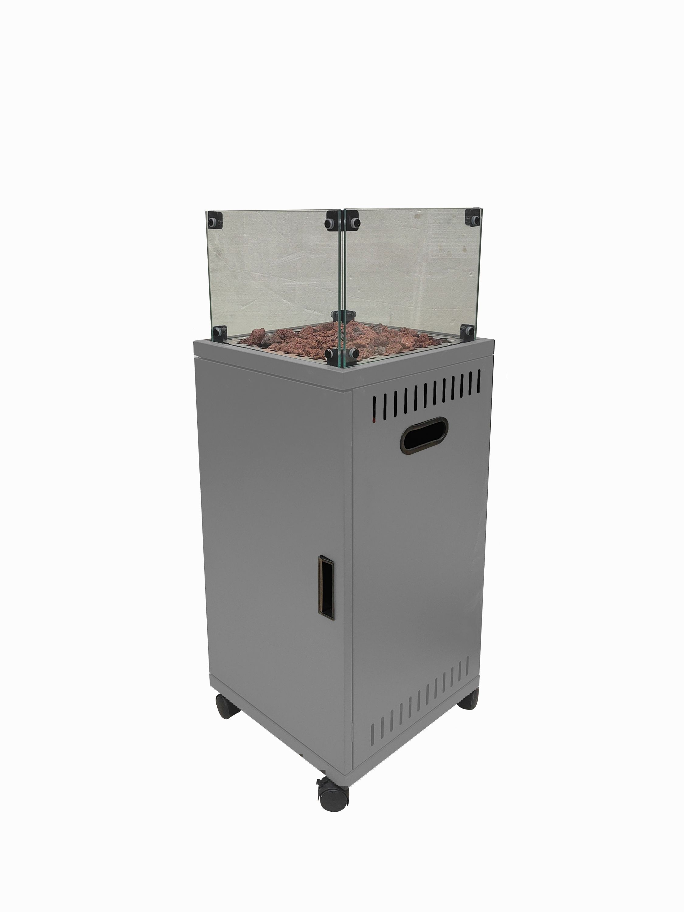 sorgt er für angenehme Temperaturen auf Terrasse, Balkon oder im Außenbereich – perfekt für gemütliche Abende und Gastronomie.Sichtflamme hinter gehärtetem Glas