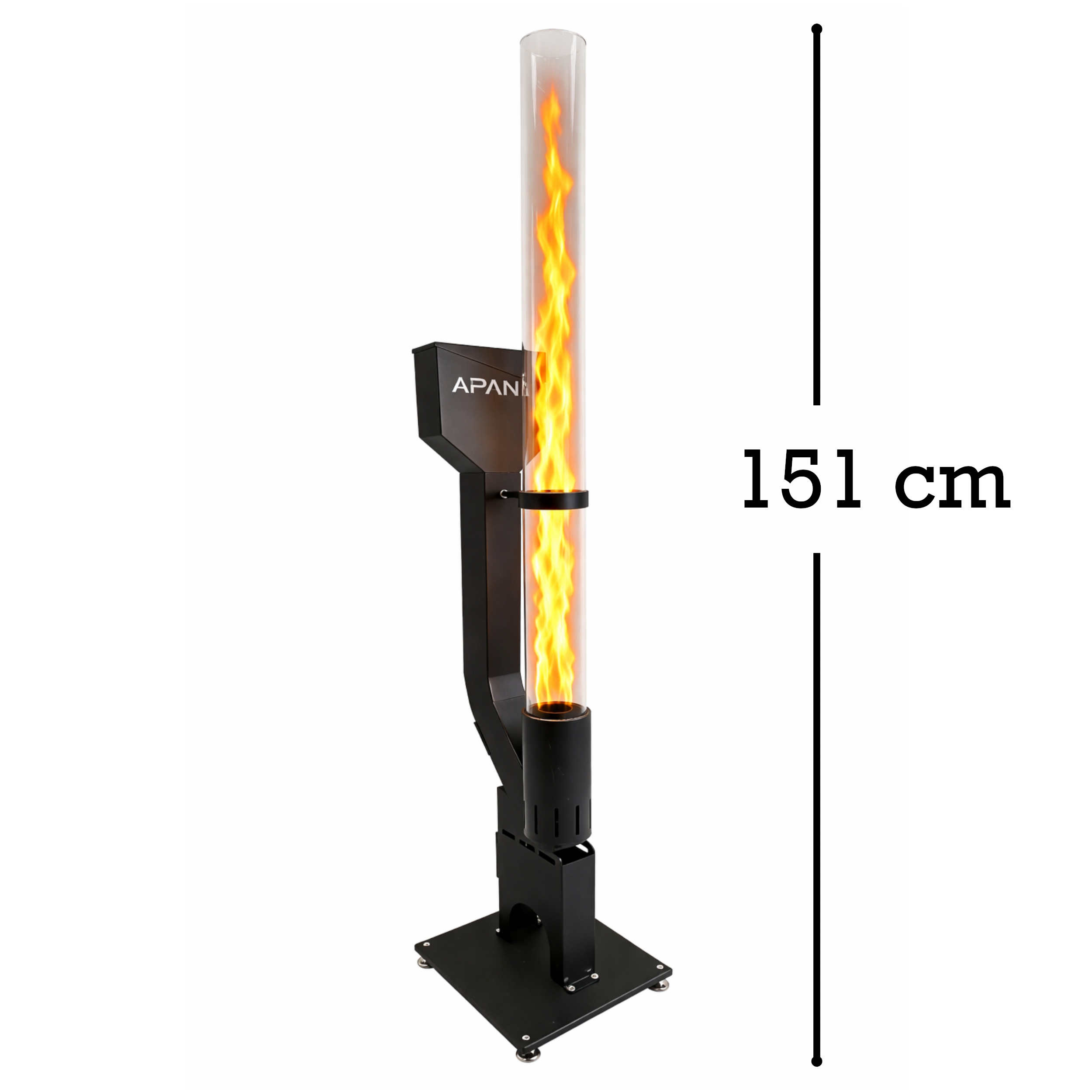 Wichtig: Die FLAME wird ausschließlich im Außenbereich betrieben. Achten Sie auf einen stabilen, ebenen und nicht brennbaren Untergrund und halten Sie einen Sicherheitsabstand von mindestens 1,20 m zu brennbaren Materialien ein – seitlich und nach oben. Bitte fassen Sie die Glasröhre nur mit hitzebeständigen Handschuhen an.