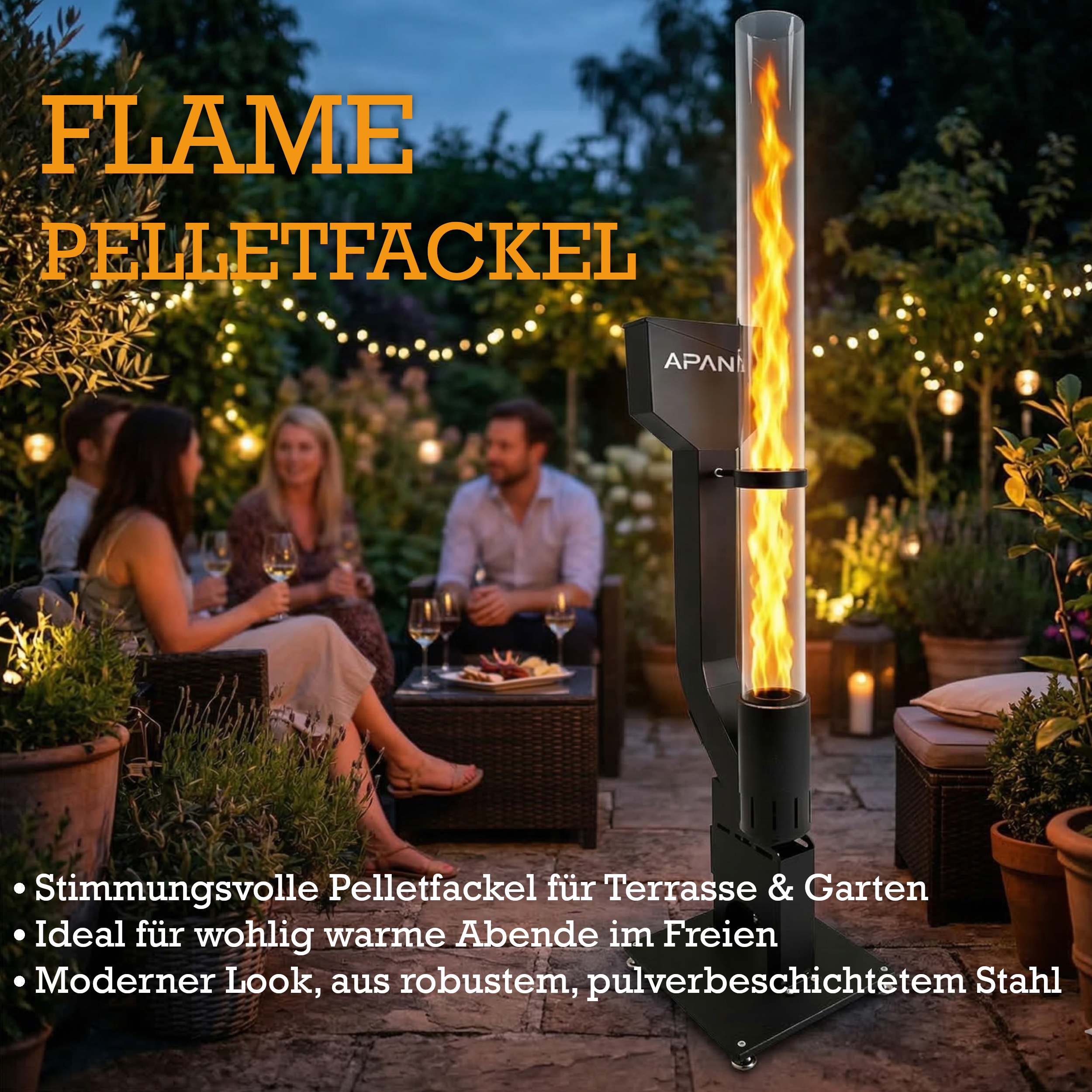 • Produkttyp: Outdoor-Pelletfackel / Feuersäule / Feuerrohr